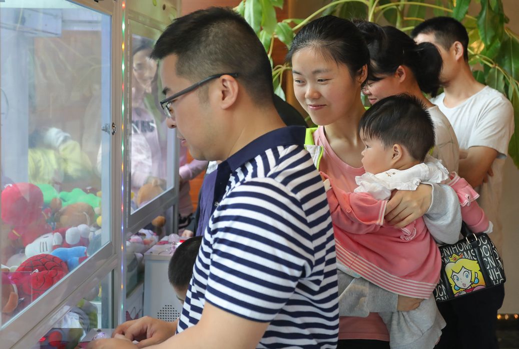 你看,这个小哥哥正在全神贯注抓娃娃