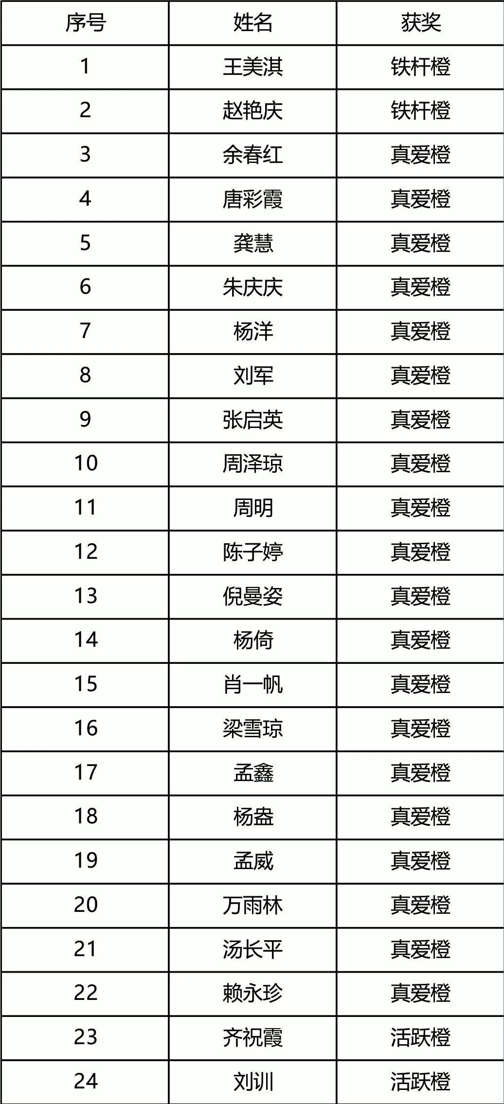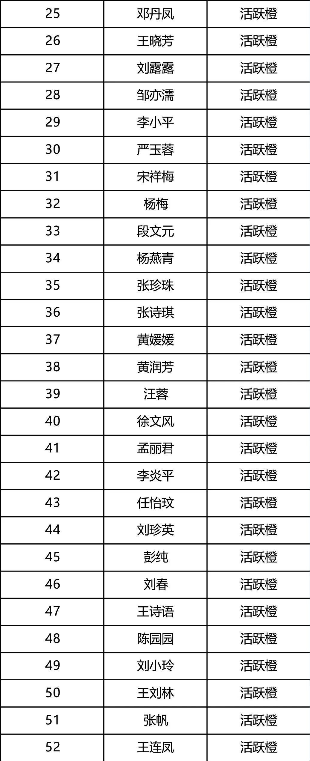 【活跃橙】的名单如下: